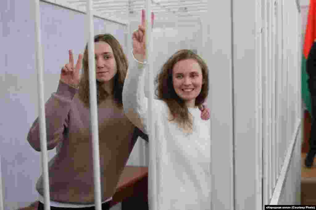 Дар'я Чульцова (зьлева) і Кацярына Андрэева перад прысудам
