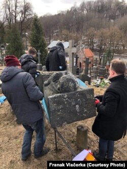 У 1989 годзе драматурга Францішка Аляхновіча сымбалічна перапахавалі ў Вільні з былых Кальвінісцкіх могілак на могілкі Росы. На кенатафе — сымбалічнай магіле — быў пастаўленая часовая, зробленая з плястыку мадэль помніка аўтарства скульптара Эдуарда Падбярэскага.
