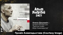 Алена Дашкевіч атрымала прэмію за вокладку кнігі «Простыя словы. Міхал Анемпадыстаў», паведаміў Беларускі ПЭН-цэнтар.