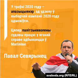 Абвінавачаны ў падрыхтоўцы масавых беспарадкаў, судовы працэс па яго справе праходзіць у закрытым рэжыме ў Магілёве. Павал Севярынец удзельнічаць у ім і даваць паказаньні суду адмовіўся.