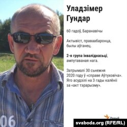Некалькі гадоў таму Гундар перанёс апэрацыю. Яму ампутавалі нагу, ён мае гіпэртанію і судзіннае захворваньне. Актывіст шмат гадоў носіць пратэз, але падчас затрыманьня праваахоўнікі прымусілі яго зьняць. У турме мужчына перасоўваецца на мыліцах.
