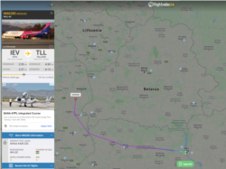 Тым часам самалёт з Кіева ў Талін робіць крук, каб абляцець Беларусь.