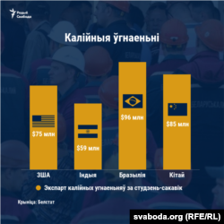 Гэта другі стратэгічны для Беларусі тавар. За студзень—сакавік Беларусь экспартавала калійных угнаеньняў на 609 мільёнаў даляраў. Найбольш у Бразылію (на $96 млн), Кітай (на $85 млн), ЗША (на $75 млн) і Індыю (на $59 млн).