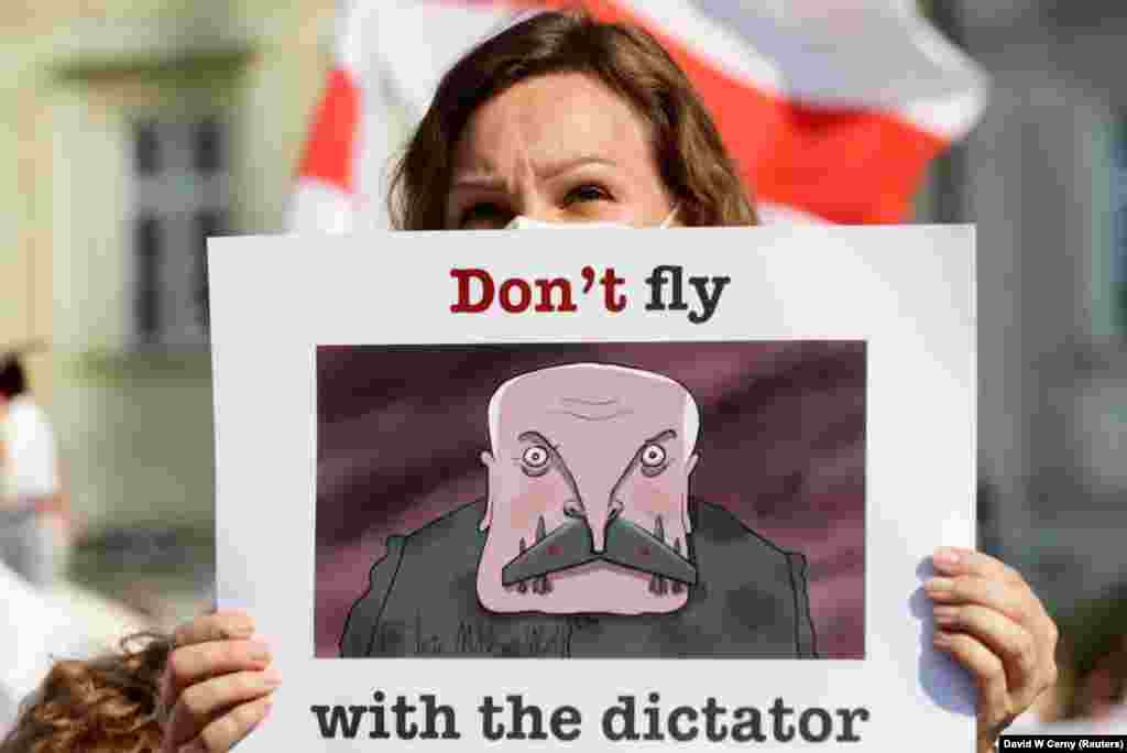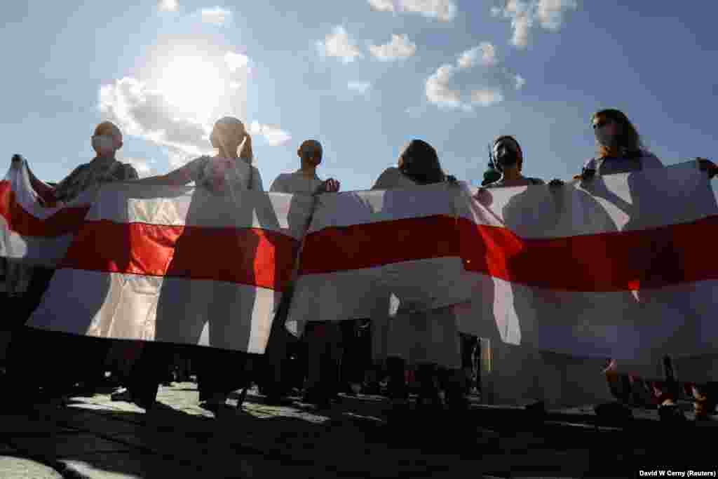 Сотні людзей прыйшлі на акцыю салідарнасьці зь Беларусьсю ў цэнтры Прагі. Выступае Ціханоўская. Фота