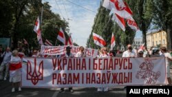 Беларусы прайшлі разам з украінцамі з парку імя Тараса Шаўчэнкі да плошчы Незалежнасьці. Яны трымалі бел-чырвона-белыя сьцягі і банэры, на якіх было напісана «Ўкраіна і Беларусь разам і назаўжды» і «Жыве Беларусь!».