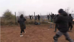 Мігранты зноў масава вярнуліся на праезную частку, дзе знаходзіцца пункт пропуску. Але асобныя іх суайчыньнікі спрабуюць рукамі зьнішчаць калючы дрот на мяжы.
