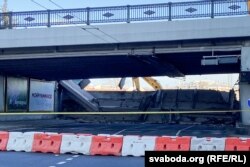 Прэс-служба сталічнай ДАІ паведаміла, што ў сувязі з абвальваньнем моста закрыты рух усіх відаў транспарту: