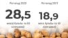 Працоўныя пэнсіі летась павышалі адзін раз — 1 верасьня. Рост склаў у сярэднім 6,3%. Але ўжо на той момант павышэньне «зьела» інфляцыя, якая за 9 месяцаў склала 7,5%.