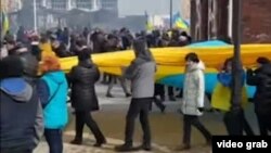 Раніцай 26 сакавіка калёна расейскіх вайскоўцаў на бранетэхніцы ўвайшла ў горад-спадарожнік Чарнобыльскай АЭС Славуціч. Гараджане са сьцягамі Ўкраіны выйшлі на пратэст. Расейскія салдаты спрабавалі іх разагнаць: яны стралялі ў паветра і ўжылі сьвятлашумавыя гранаты. У адказ людзі скандавалі «Славуціч – гэта Ўкраіна!» і «Дадому!»