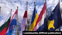 Беларусь на цырымоніі ў Бухенвальдзе пад бел-чырвона-белым сьцягам прадставіў Павал Латушка