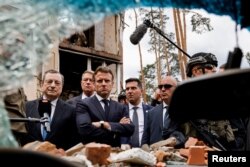 Ва Ўкраіну прыехалі прэзыдэнт Францыі Эманюэль Макрон, канцлер Нямеччыны Оляф Шольц і прэм’ер-міністар Італіі Марыё Драгі. Яны ўжо ў Кіеве, дзе сустрэнуцца з прэзыдэнтам Украіны Ўладзімірам Зяленскім. Палітыкі наведалі Ірпень, дзе, як і ў іншых гарадах Кіеўскай вобласьці, пасьля адступленьня расейскіх вайскоўцаў былі знойдзеныя дзясяткі целаў мірных жыхароў.