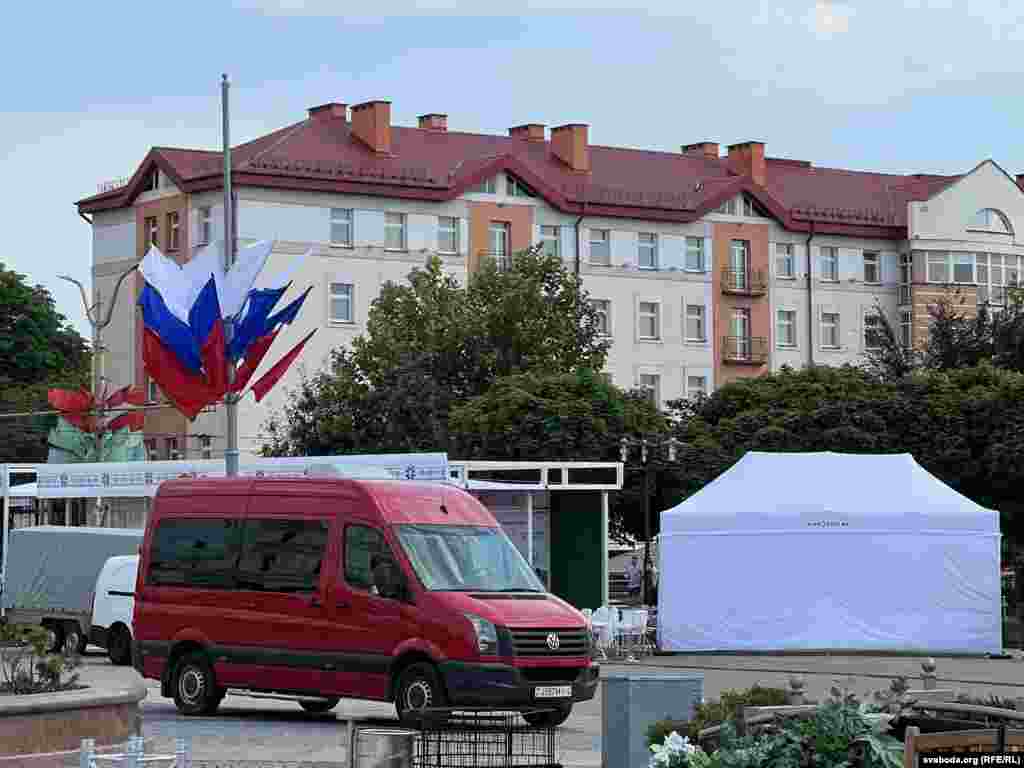 На Савецкай плошчы разьвесілі шмат расейскіх сьцягоў