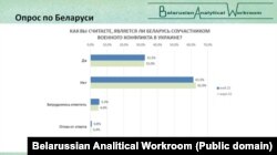 Паводле сакавіцкага апытаньня Беларускай аналітычнай майстэрні толькі 11% выказваліся за ўдзел беларускай арміі ў вайне, цяпер гэтая доля зьнізілася, хаця і нязначна.