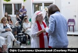 Ад Беларусі, апрача Сьвятланы Ціханоўскай, у мэмарыяльных урачыстасьцях у Бэрліне бярэ ўдзел сястра палітзьняволенай Марыі Калесьнікавай Тацяна Хоміч.
