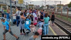 Валянтэры, пазьней — служба аховы, паліцыя і вайскоўцы падзялілі людзей на чатыры групы, па колькасьці вагонаў. Але гэта не гарантуе, што ўсе паедуць. Наперадзе сэлекцыя. Інваліды, зь немаўлятамі, з сабакамі...