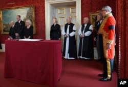 Праклямацыя была адразу ж падпісаная (у парадку чарговасьці) спадчыньнікам прастола прынцам Уільямам, каралевай-кансортам Камілай, кіраўніком Рады, прэмʼер-міністрам Вялікай Брытаніі Ліз Трас і арцыбіскупам Кентэрберыйскім, паведамляе ВВС.