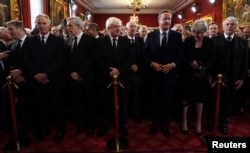 У першым шэрагу гледачоў былыя прэмʼер-міністры Вялікай Брытаніі — Джон Мейджар, Гордан Браўн, Дэвід Камэрон, Тэрэза Мэй. Разам зь імі стаіць лідэр брытанскай апазыцыі, кіраўнік партыі лейбарыстаў Кір Стармэр.