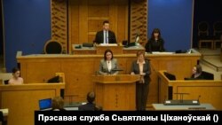 Зьвяртаючыся да дэпутатаў, Ціханоўская згадала Антона Луцкевіча: