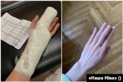«Хутчэй за ўсе ботам наступілі. Я проста нічога не адчула ў момант, калі гэта адбылося. Калі я ўжо ляжала, я выцягнула руку, гляджу — там няма ўжо пазногця і рана была, адарваная частка», — згадвае дзяўчына. Паводле яе, вакол было шмат крыві.