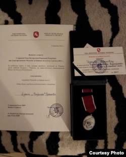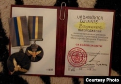 Дзянісу Урбановічу ў распалажэньні штабу ў Кіеве ўручылі баявую ўзнагароду Ўкраіны — мэдаль «За бойові заслугі». А таксама прадстаўнік Рады БНР уручыў яму салдацкі Мэдаль за баявыя заслугі, заснаваны Радай БНР.