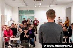 Наведнік прэзэнтацыі Алег, жонка якога цяпер за кратамі, выказаўся пра вяртаньне беларусаў на радзіму.