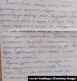«Кніг у тутэйшай бібліятэцы, я разьлічваю, мне хопіць да канца тэрміну. І гэта не пра багаты выбар, а пра аптымізм. З 6-дзённай працай я добра калі пасьпяваю прачытаць адну кнігу за паўмесяца. Ёсьць дні, калі ні на радочак часу не стае», — піша палітвязень.