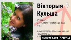 - Палітзьняволеную інжынэрку па ахове працы затрымалі 4 лістапада 2020 году за тое, што яна адміністравала тэлеграм-канал і чат «Кіроўцы 97%». Яе абвінавацілі паводле ч. 1 і ч. 2 арт. 342 Крымінальнага кодэксу (Арганізацыя і падрыхтоўка дзеяньняў, якія груба парушаюць грамадзкі парадак). У лютым 2021 году Вікторыю асудзілі да 2,5 гадоў калёніі і накіравалі адбываць тэрмін у гомельскую жаночую калёнію.