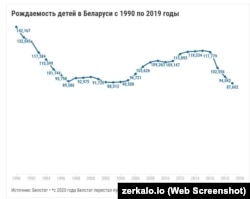 Але і гэты сумны паказчык сёлета будзе пабіты з паказчыкам менш за 57,5 тысячы нованароджаных — гэта ўжо антырэкорд сама меней з 1950 году, падлічылі журналісты. Такімі тэмпамі нараджальнасьць не зьніжалася нават у 1990-х: тады самае вялікае падзеньне паказчыка было ў 1995-м — на 8,6%.