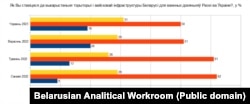 Дадзеныя апытаньняў БАМ пра стаўленьне да ўдзелу беларускага войска ў вайне падобныя да дадзеных Chatham House (Графік 1) — пераважная і практычна нязьменная большасьць беларусаў была і застаецца супраць гэтага.