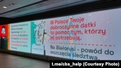 У Варшаве на вялікіх рэклямных экранах зьявіліся электронныя плякаты, якія на прыкладах расказваюць палякам пра сытуацыю ў Беларусі і пра тое, як за простыя і бяскрыўдныя дзеяньні можна трапіць пад палітычны перасьлед, заўважыў тэлеграм-канал «Цэнтар беларускай салідарнасьці».