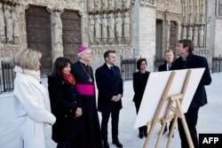 «Пажар 2019 году быў нашай нацыянальнай траўмай. Ваша праца і неабыякавасьць сталі лекамі для яе. Вы аднавілі мастацтва з попелу», — сказаў Макрон. Ён асабліва ўшанаваў памяць генэрала Жана-Луі Жаржэлена, які кіраваў рэстаўрацыяй і летась памёр.