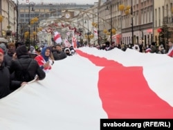 Беларусы разгарнулі вялікі бел-чырвона-белы сьцяг на маршы ў Варшаве даўжынёй ў 250 мэтраў. Падчас маршу гучалі воклічы «Жыве Беларусь», «Верым, можам, пераможам!» і «Свабоду палітвязьням!»