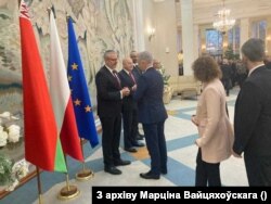 Марцін Вайцяхоўскі выступае на дыпляматычным прыёме ў Менску.