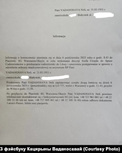 Ваданосава: Супрацоўнікі памежнай службы перадалі ліст, што маці павінна прыехаць у варшаўскі аэрапорт 6 кастрычніка для дэпартацыі ў Літву