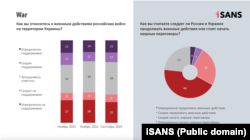 Паводле зьвестак сацыялягічнага апытаньня, праведзенага міжнароднай экспэртнай сеткай iSANS сёлета у верасьні, 69% выступае за пачатак мірных перамоваў паміж Расеяй і Ўкраінай і заканчэньне вайны.
