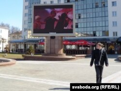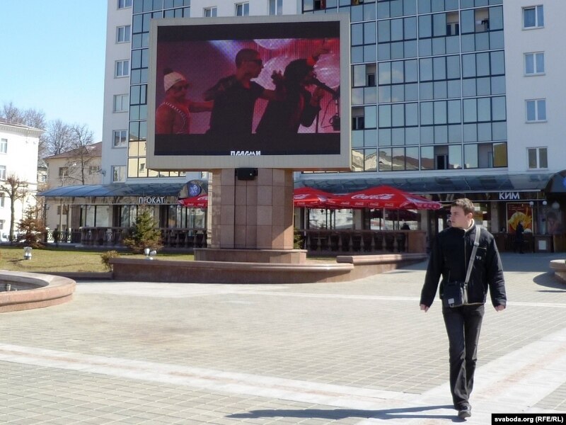 На плошчы Перамогі ў Віцебску на вялізных сьвятлодыёдных экранах трансьлююцца запісы канцэртаў «Славянскага базару» ды рэкляма забаўляльных мерапрыемстваў. У тым ліку і на 16 красавіка — нягледзячы на паведамленьне на сайце гарвыканкаму пра адмену ўсіх падобных імпрэзаў да канца гэтага тыдня.