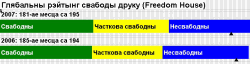 Дасьледчы цэнтар “Freedom House” у глябальным рэйтынгу свабоды друку ставіць Беларусь у канец сьпісу – на 181-е месца са 195-ці, у лік краінаў, дзе свабода слова жорстка ўціскаецца, а журналістаў перасьледуюць. У параўнаньні з 2006 годам сытуацыя крыху палепшылася – тады Беларусь была на 185-м месцы.