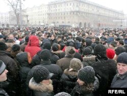 12.20 На Кастрычніцкай плошчы зьявіўся лідэр незарэгістраванага "Руху "За Свабоду" Аляксандар Мілінкевіч. Прадпрымальнікі скандуюць: "Работу!"