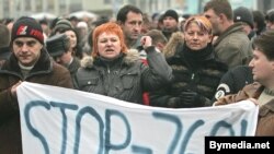 Belarus-Makaeu The leader of businessmen, 08Jan2008“Мая стаўка на 18 чысло. Каб, нягледзячы на запалохваньні, пагрозы ўладаў наконт крымінальных справаў, рабіць аналяг плошчы Каліноўскага. І страйк добра, але гэта ў шмат разоў лепш, калі ўдасца абвясьціць, што мы застанемся на плошчы з эканамічнымі лёзунгамі, а потым пяройдзем на палітычныя, калі нас будзе шмат і ўлады ня пойдуць нам насустрач”.