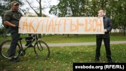 Каля амбасады Расеі ў Менску актывісты «Маладога фронту» правялі 8 верасьня акцыю, прымеркаваную да Дня вайсковай славы.