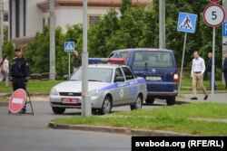 Акцыю пільнавалі некалькі дзясяткаў людзей у цывільным з рацыямі, у двары ля амбасады стаялі два аўтазакі.