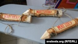 «Калі знаходзім такія, то замаўляем. Вось у нас кашуля ёсьць з надпісам „Ад сяброў з Магілёва“. Дужа яе купляюць. А вось аловак, бачыце, на беларускай мове „Магілёў“ напісана. Зразумела, турысты хочуць купляць сувэніры на беларускай мове. Нашто ім везьці зь Беларусі на іншай?»