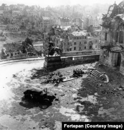 Вышэйпрыведзенае фота, зробленае з Будайскай крэпасьці, зьяўляецца адным з сотняў здымкаў, што захоўваюцца ў вугорскім архіве Fortepan, на якіх адлюстраваныя маштабы разбурэньня Будапэшту пасьля 13 лютага 1945 г. У той дзень страляніна змоўкла пасьля сямі тыдняў разбурэньня, якое стане вядомым як аблога Будапэшту.