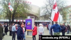 Каля кінатэатру «Кастрычнік» сабралася некалькі дзясяткаў чалавек. Актыввісты «Маладога фронту» Мікалай Дземідзенка, Уладзь Яроменак і Эдуард Лобаў разгарнулі сьцяг сваёй арганізацыі. Прысутнічае сустаршыня БХД Павал Севярынец і праваабаронца Валер Шчукін. Збор людзей перад шэсьцем адбываецца ў прысутнасьці вялікай rолькасьці міліцыянтаў і АМАПаўцаў.