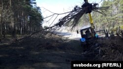 «Ніякага аўралу няма, плянавае прыбіраньне лесу. Высякаем хмызьняк, але ялінкі пакідаем, думаем пра тое, які лес будзе потым», — патлумачыў лясьнічы.