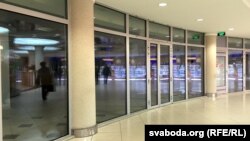 Гандлёвы цэнтар «Сталіца», які месьціцца ў так званым «падземным горадзе» на плошчы Незалежнасьці ў Менску, сустракае наведнікаў улёткамі і абвесткай: