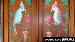 І ўсё ж адну працу я знайшоў. У суседніх Малых Давыдках, у бабы Мальвіны стаіць шафа, расьпісаная Драздовічам. Дзьверкі ўпрыгожаныя блакітным і ружовым папугаямі на вінаградных гронках.