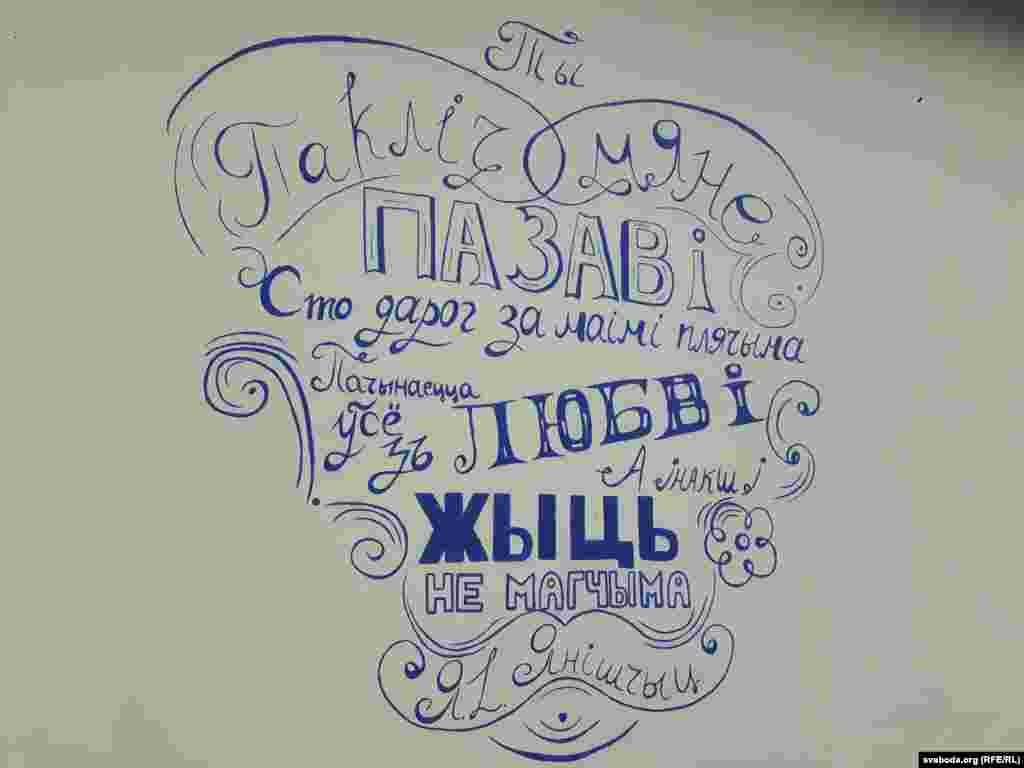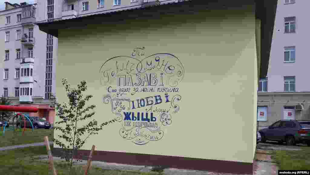 Мастачка Юлія Раткіна размалявала сьцяну трансфарматарнай падстанцыі фрагмэнтам зь верша Яўгеніі Янішчыц.