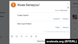 Facebook дазволіў пісаць пасты адначасова на беларускай ды іншых мовах