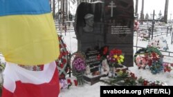 На могілкі ў вёску Сьцяг Працы, дзе пахаваны Міхаіл Жызьнеўскі, прыехалі яго бацькі, дзясяткі грамадзкіх актывістаў з Гомеля й Менску.